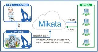 「Mikata」とは、建機レンタル会社の業務を効率化するクラウドサービスです。建機レンタル会社は、保有している中古の建設機械を売却する際や、顧客である建設業者の機械を代理売却する際に、従来よりも極めて効率的に一括見積もりを取ることができます。従来では多くの労力を割いても5、6社に相見積もりを取ることが限界でしたが、「Mikata」のシステムを使えば数分で多くの買取会社に相見積もりを取ることができるようになります。また、今まで売りにくかった機械や車両(ダンプやトラック)も「Mikata」なら手間なく簡単に売却することができます。