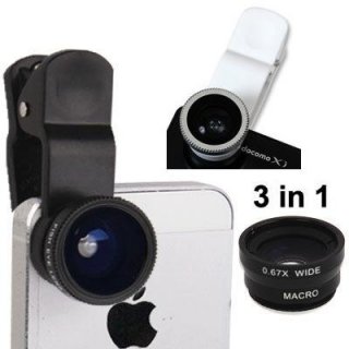 クリップで挟むだけの魚眼、広角、マクロレンズです。