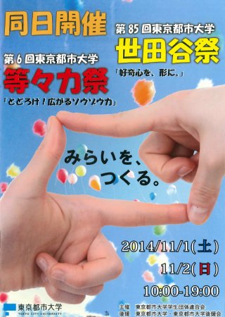 ・11/2(日):TOSHI ROCK FESTIVAL'14(出演:「This is Not a Business」、「さよなら、また今度ね」)、JAZZ FESTIVAL 2014、教えて!都市大先生!!(講演:高木直行教授)、ホームカミングデー