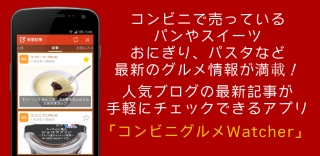 「コンビニグルメWatcher」は、厳選されたコンビニ通ブロガーたちの最新レビューを手軽にチェックできるアプリです。