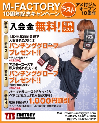 1.<ラスト>M-FACTORY10周年記念キャンペーン!~アメ村ジムオープン10周年~