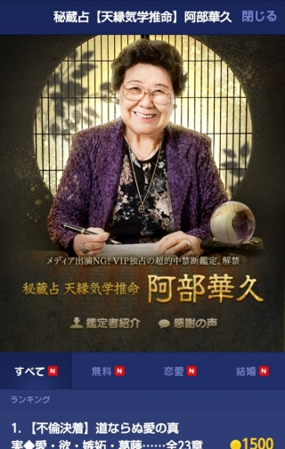 株式会社ザイオンメディアオフィスは、LINE株式会社の運営する占いアプリ「LINE 占い」において、本格占いコンテンツ『秘蔵占【天縁気学推命】阿部華久』の提供を2014年12月3日(水) より開始いたしました。