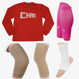 プラクティスTシャツ(カラーは選べません) LST14、ふくらはぎ着圧サポーター(カラーは選べません/通常商品と異なり、ロゴが灰色)、ストレッチサポーター(カラーは選べません) ひじ用、ストレッチサポーター ひざ用 (1枚入り/ベージュ)、シルクサポーター 足首用 (1枚入り/ホワイト)