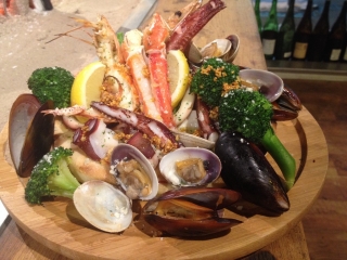 もはやピザと呼べるのか笑!?と疑ってしまう程、北海道の旬の食材を盛り込んだメニューです。写真の中でピザ生地を探すのに苦労するほど笑。もちろん盛り付けだけでなく、トマトソースとチーズをベースに貝類とブロッコリー、たこやタラバ蟹などをガーリックで炒め、乗り切れないほどにドーンとトッピング!タラバ蟹やたこの旨味がガーリックと重なり、食材本来の味を引き立てます。