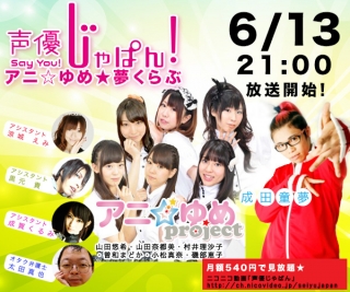 「声優じゃぱん!」第5回目の生放送を、2015年6月13日(土) 21時より開始します。