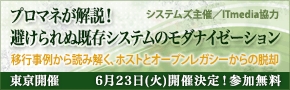 また、オープン系レガシーシステムのマイグレーション事例では、直前に迫った「Windows Server 2003」のサポート終了などの旬の話題も取り上げながら、VB6.0で開発された既存アプリ資産やOffice製品の変換移行や、バージョンアップ事例を、マイグレーションツールによるデモも交えて紹介します。さらに、今回のセミナーにはアイティメディア株式会社が協力、ITmediaエンタープライズ編集長の石森将文氏が、IT系メディアの視点で、“古いITから新しいITへの移行”という新しい課題に対する基盤構築のあり方について特別講演を行います。