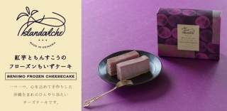 『紅芋とちんすこうのフローズンちいずケーキ』は、沖縄県内の農家様との協力体制のもと地元の魅力的かつ安心な食材にこだわって開発された新商品です。素材には沖縄県産の紅芋 を100%使用、フレッシュクリームチーズの滑らかさと沖縄特産の黒糖のコクがマッチした、甘さ控えめのクリームチーズケーキとなっています。また、ケーキのボトム生地には沖縄の定番お菓子である「塩ちんすこう」を使っており、ちんすこうの“サクサク感”とフローズンケーキの“シャリ感”が合わさった、「ヒンヤリとろける」新食感をお楽しみいただけます。