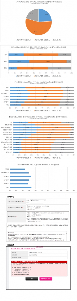 なお、多くのニュースではカラコンユーザーの眼科受診率の低さに注目したものが多いですが、先に紹介したジョンソンエンドジョンソンの調査にはコンタクトレンズをインターネットで購入している人で「購入する際は常に検査を受けている」人はわずか3.2%という調査(http://acuvue.jnj.co.jp/corp/press/p0160.htm)も公開されており、カラコンだから低いということではなく購入ルートによる違いが大きいと考えられます。そのため、そもそも眼科併設のコンタクトレンズ専門店以外での購入ルートが利便性の優位性をもとに高くなっている中で、どのように眼科への定期検診へ導線を引いていくかは、インターネットショップとしては今後の課題であると認識しています。