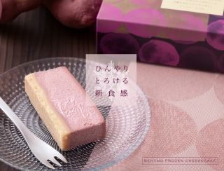 半解凍(フローズン)の状態で召し上がっていただくのが特徴である『紅芋とちんすこうのフローズンちいずケーキ』は、沖縄県内の農家様との協力体制のもと地元の魅力的かつ安心な食材にこだわって開発されました。素材に沖縄県産の紅芋を100%使用し、フレッシュクリームチーズの滑らかさと沖縄特産の黒糖のコクがマッチした、甘さ控えめのクリームチーズケーキとなっています。