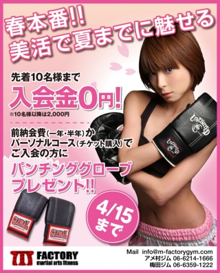 2.前納(1年・半年)コースとパーソナルコース(チケット購入)でご入会の方には、Pグローブプレゼント(3500円相当)!
