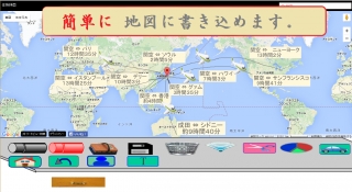 ☞ ホワイトボード上でこのような画像作成ができます①: 旅の計画、おすすめ観光スポットなどの地図にお役立ち情報を書き込む。