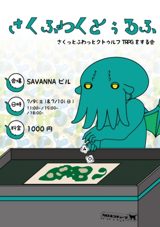 「さくふわくとぅるふ」は参加者自身が物語のキャラクターとなって、物語で発生する事件の真相を見つけ出していくゲームです。プレイヤーは、物語の中で物事に対する選択を自分で考えることができ、ダイスの出た目によって成功/失敗が決まります。事件の真相にたどり着き、解決することができればクリアです。