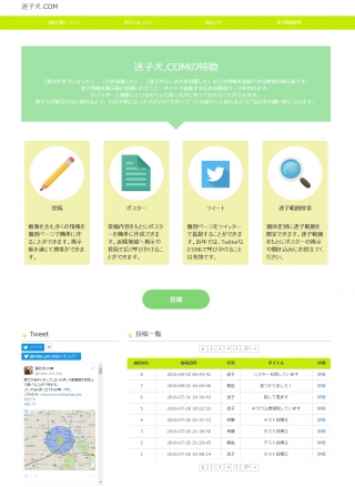 迷子犬を探している方、保護した方、目撃した方などが情報交換をするための掲示板です。Twitterと連動しているので、より多くの方に知ってもらうことができます。