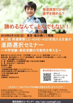 (受付時間10:00〜22:00)URL:http://juku-coaching01.com/inquiry/seminar20160918.html