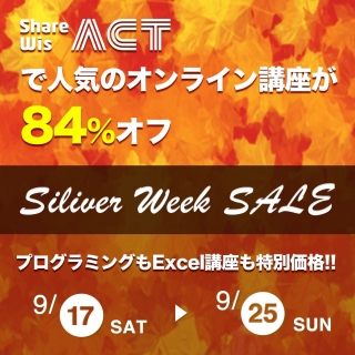 株式会社シェアウィズ(本社:大阪府大阪市、代表取締役社長 辻川友紀、以下シェアウィズ)は、同社が運営する、オンライン教材のマーケットプレイスShareWis ACT(シェアウィズ アクト)にて、シルバーウィーク限定セールを開催しました。