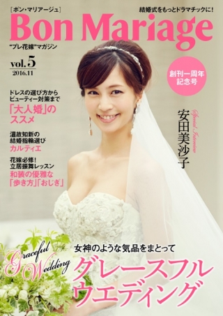 無料で読める電子雑誌を発行する株式会社ブランジスタ(本社:東京都渋谷区、代表取締役社長:岩本恵了、証券コード:6176)は、安田美沙子さんが表紙・巻頭を飾る、結婚式をもっとドラマチックに!“プレ花嫁”マガジン「Bon Mariage」創刊1周年記念号(vol.5)を公開いたしました。