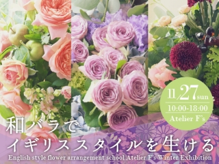 注目を集めるばら作家、國枝啓司氏の「ローズファームケイジ」より直接仕入れた和バラを用いたアレンジメントをアトリエフィーズの生徒さんが制作・展示します。