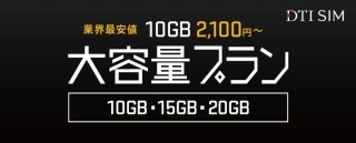 株式会社ドリーム・トレイン・インターネット(本社:東京都渋谷区、代表取締役社長:田中伸明、以下「DTI」)は、モバイル高速データ通信サービス「DTI SIM」において、業界最安値※1である「DTI SIM データプラン 10GB」「DTI SIM データSMSプラン 10GB」「DTI SIM 音声プラン 10GB」などの大容量プランの提供を、本日11月21日(月) より開始することをお知らせします。
