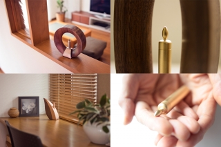 素材:ウォールナット(オイル仕上げ)、真鍮(各色メッキ仕上げ)