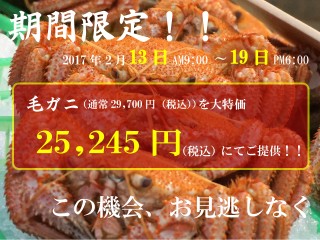 今回、この北海道の毛ガニを期間限定で、大特価にてご奉仕させていただきます。