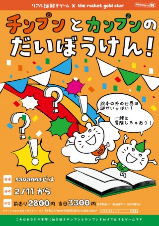 「チンプンとカンプンのだいぼうけん!」は参加者自身が主人公となって謎を解き、物語を進めていくリアル謎解きゲームです。プレイヤーは、暗号やパズルが散りばめられた密室に閉じ込められます。制限時間内に謎を解き、目的を達成することができればクリアとなります。神戸市のごみ分別キャラクター「ワケトン」で有名なthe rocket gold starさんとタイアップ!絵本「チンプンとカンプンのおともだち」にでてくるチンプンとカンプンと一緒に謎を解いていく楽しい公演です。宝ものを探す旅に出たチンプンがいつまでたっても帰って来ない!カンプンと一緒に友達を作りながら、チンプンを探す旅に出ましょう