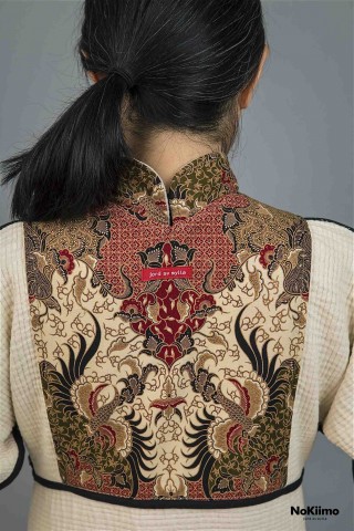 ミラのテキスタイルへの知識と興味は、母親のテキスタイルアーティスト、エヴァ・エック-シェーファー(Eva Ek-Shaeffer)のゴブラン織りのタペストリーからもたらされています。また、1997年には自身の会社「jord av mylla」を設立。1998年からは日本の京都に家族とともに暮らし、2013年には「Nokiimo(ノキモ)」をスタートさせ、東西文化の融合に向き合いながら、西洋服の仕立てと日本の伝統的な職人技を結びつける創作を展開しています。さまざまな自然素材を用いた「Nokiimo」の衣服は、あらゆる年齢層が現代生活でサスティナビリティを共有でき、それ自体に演劇性のある、性差を超越したユニセックスな衣服となっています。
