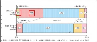 では、ホームページからの集客はあまり見込めないのかと問われれば、決してそうではなく、ホームページを開設した企業の内、「やや増加した」したと回答したのは34.1%、ホームページを開設していない企業と比べると約25%以上の企業にとって有効となっています。