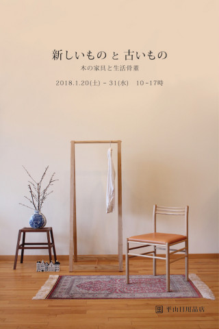 平山日用品店では、職人(夫)とデザイナー(妻)の2人が共同で木の家具を製造・販売しています。経年変化が楽しめる無垢材と「機能から生まれる形」を大切にした飽きのこないデザインによって、永く使い続けられる家具を作り続けています。2018年初めての展示会は、これから愛情を持って永く使い続けられる家具とこれまでに永い時間愛されてきた生活骨董との調和がテーマです。時を超えて愛され続けるものが持つ美しさと、それを追い求める当店のものづくりの姿勢をご覧下さい。また、今回も新春セールを開催致します。是非この機会に、平山日用品店にお越し下さい。お待ちしております。
