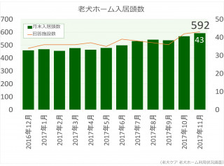 ◎2017年11月 末時点の老犬ホーム入居頭数は592頭