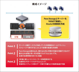 Oracleで構築されたDB基盤は、受発注や出荷/在庫管理、請求/支払など、社内の基幹業務処理すべてを担っており、また、スマホアプリなどの新サービスも増加しています。さらに今後は、ビッグデータ利活用などの取り組みも視野に入れているため、DB基盤用ストレージの高速化が急務となりました。