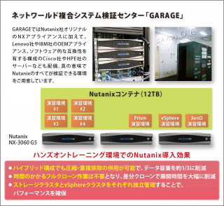 ITインフラのソリューション・ディストリビューターである株式会社ネットワールド(本社:東京都千代田区、代表取締役社長 森田 晶一)は、複合システム検証センター「GARAGE(ガレージ)」のハンズオントレーニング環境の再構築で、ハイパーコンバージド・インフラストラクチャー「Nutanix」を導入し、本格稼働開始したことを発表します。