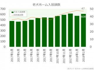 ◎2018年2月 末時点の老犬ホーム入居頭数は608頭