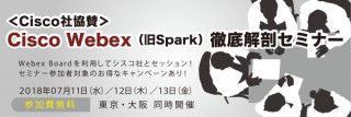 本セミナーでは、2018年4月 にリニューアルされたWebexのサービス概要や旧Webexサービスとの比較、Webex MeetingsとWebex Teamsの違いなど、あらゆる角度から「Cisco Webex」を徹底解説します。また、会場とCisco社を、Cisco Webex専用端末のWebex Boardで接続するデモンストレーションを行い、新しくなったWebexの魅力に迫ります。