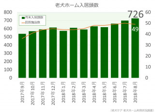◎2018年8月 末時点の老犬ホーム入居頭数は726頭