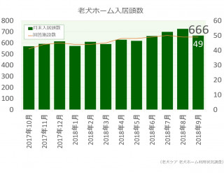 全国の老犬ホームの有料入居頭数は666頭となりました。