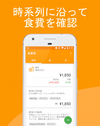 ・入力した食費は「日付」「過去 7 日間」「月」単位で確認できます