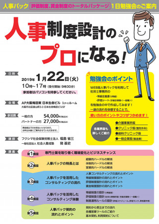 人事コンサルティングへの進出を考えている社会保険労務士や専門士業の方向けに、人事制度構築ソリューション「人事パック」の1日実践勉強会を開催します。