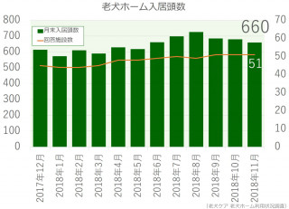 ◎2018年11月 末時点の老犬ホーム入居頭数は660頭