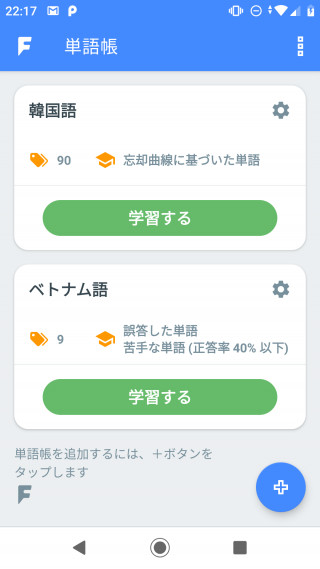 「忘却曲線に基づく学習モード」機能を搭載、効率的で効果的な復習方法に拘った単語帳アプリ『単語帳F』Android 版をアップデート
