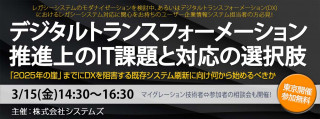 株式会社システムズ(本社:東京都品川区、代表取締役社長:小河原隆史)は、3月15日(金) に東京・五反田の東京本社セミナールームで、「デジタルトランスフォーメーション推進上のIT課題と対応の選択肢」 ~「2025年の崖」までにDXを阻害する既存システム刷新に向け何から始めるべきか~ と題したプライベートセミナーを開催します。