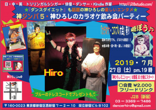ダンサー・俳優・歌手のみならず、アマゾンのKindle作家としても「好きなダンスでダイエツト」で人気と話題の神ひろしが、『神ジンパ第5弾』7月ライブで「タバコと煙とデブのままで〜」の楽しいエンタメライブを開催する。