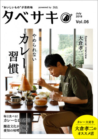 大人の女性に上質な旅時間を届ける「旅色」が提案する、「食」に特化した電子雑誌「タベサキ」。6号目となる7月号の表紙には、カレー大好き俳優の大倉孝二さんが登場。特に、南インド料理が大好きという大倉さんが気になっているお店に一緒に行ってきました。また、愛知県の食文化を牽引する味噌について、その歴史を紐解き旨さの根源に迫ります。