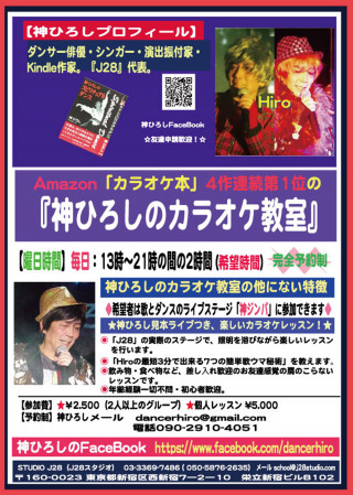 世界で活躍のパフォーマーの神ひろしの至れり尽くせりの「カラオケ教室」は交通至便の新宿『J28』にあり、これはもう差し入れ持参で、参加するしかないでしょ?!