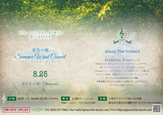 この度、Peaceful Musicは演奏会 「夏色の風 サマーウィンドコンサート」を2019年8月25日 に開催致します。