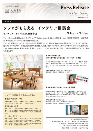がもらえる!インテリア相談会を9月1日 から開催します。