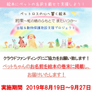 ふくふくやま(ふく乃杜株式会社)は、クラウドファウンディング(makuake)を通じて『虹の橋の絵本出版&動物保護支援プロジェクト』を 2019 年 8 月 19 日〜9月27日 の期間で実施中です。