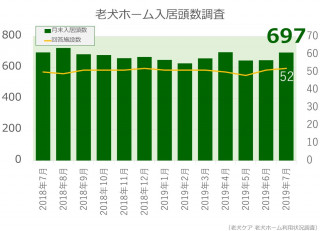 ◎2019年7月 末時点の老犬ホーム入居頭数は697頭