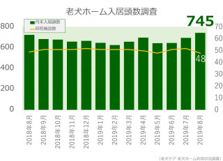 ◎2019年8月 末時点の老犬ホーム入居頭数は745頭