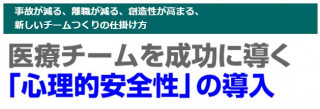 チームに導入された心理的安全性がもたらす効果は、医療安全だけではありません。ビジネスの世界でチームの生産性が高まった、ということは、チーム医療におきかえれば、病院独特の、資格によるヒエラルキーに支配された息苦しさや、医療者個々のキャラクターに依存した非効果的なコミュニケーションが改善し、職種間の信念対立の場面でも互いに腹蔵なく話し合うことが可能になることが期待できます。