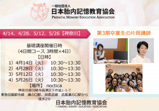 一般社団法人日本胎内記憶教育協会の講師養成講座第3期卒業生の片岡講師の基礎講座になります。